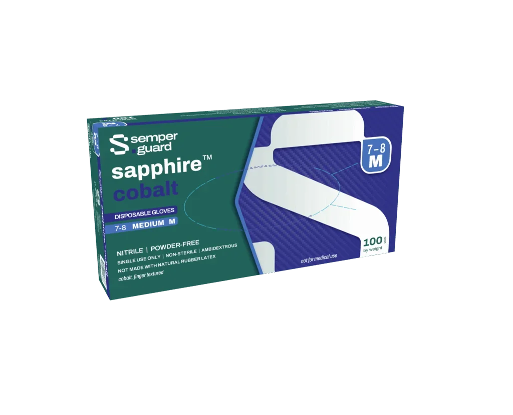 semperguard® sapphire™ cobalt disposable nitrile gloves are designed to offer excellent gripping capabilities and are versatile for a variety of applications. These gloves strike a balance between multi-purpose protection and tactile sensitivity, helping users maintain dexterity handling tasks with precision. They are an ideal choice where both performance and comfort are crucial.