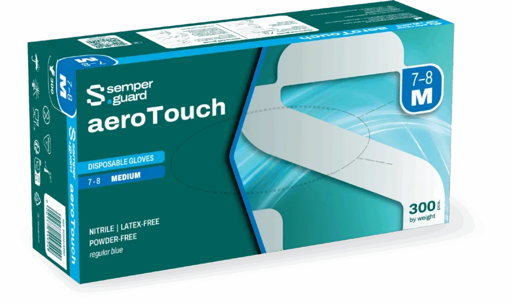 semperguard aeroTouch™ is our revolutionary 2.2g nitrile disposable glove. Soft, flexible, and resilient, this glove is lightweight but strong. The innovative design results in a glove that conforms to your hand and offers a comfortable, natural fit with unrestricted hand motion.